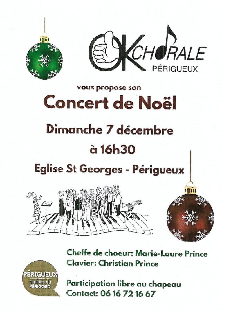 Concert de chant choral - Eglise St Georges - Périgueux - 1ère partie : répertoire varié - 2ème partie : chants de Noël - Participation libre au chapeau.