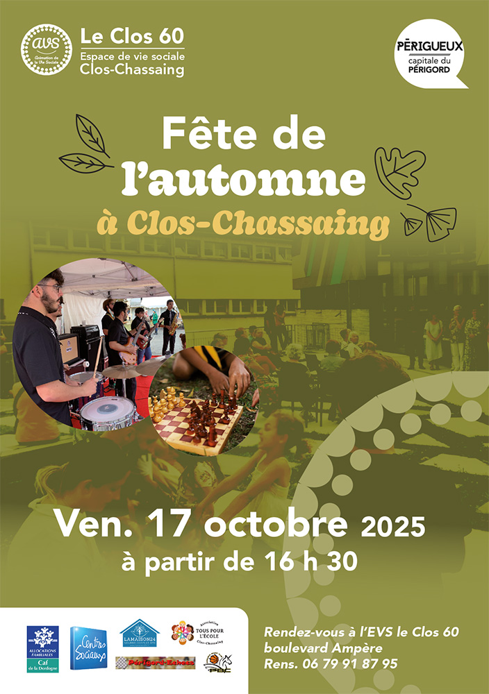 Organisée à l’Espace de Vie Sociale (EVS) le Clos 60, la Fête de l’automne s’annonce une nouvelle fois riche en animations pour petits et grands. Le programme reprend les ingrédients qui ont fait son succès les années passées : ateliers, démonstrations et animations portés par les associations partenaires et les services municipaux.